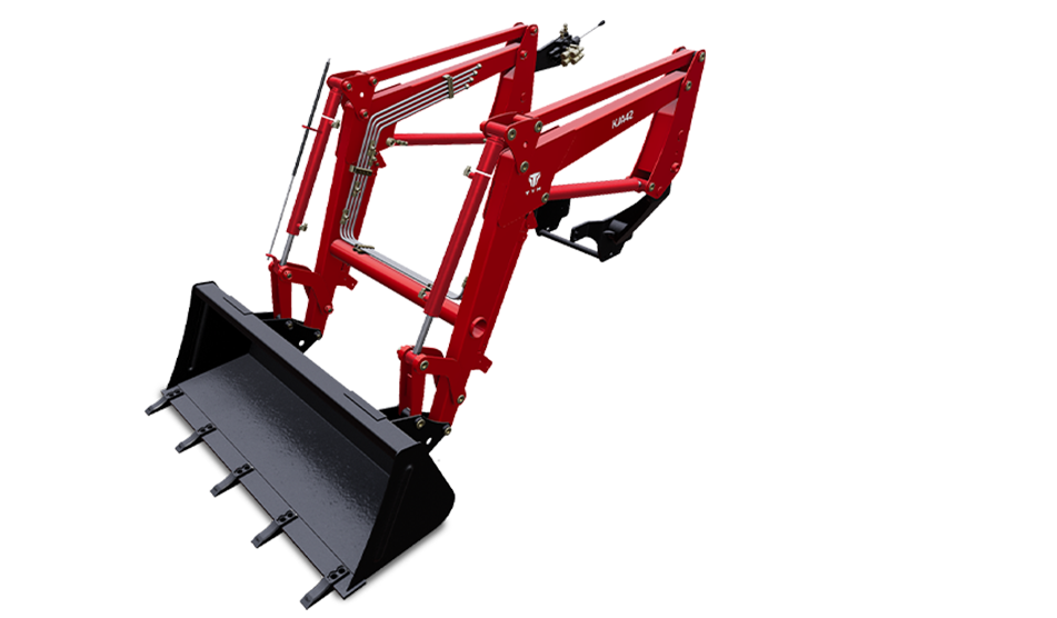 TYM KJA42 프런트 엔드 로더와 함께 조작성과 생산성의 기준을 확실하게 높여 보세요. TYM K42, K48, K48L 트랙터와 호환되며, 탁월한 리프트 높이와 용량으로 파워와 성능을 보완해 줍니다.