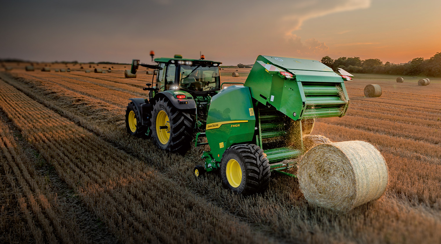 존디어 F442R은 대량작업을 위해 설계된 프리미엄 원형베일러로, 다양한 작물조건에서 안정적인 베일작업을 지원합니다. 또한 트랙터 ISOBUS 및 TIA 활성화 시, 베일러 자동화-선택을 통해 뒷문자동, 주행 자동정지 기능을 지원해 작업효율과 편의성을 높입니다.